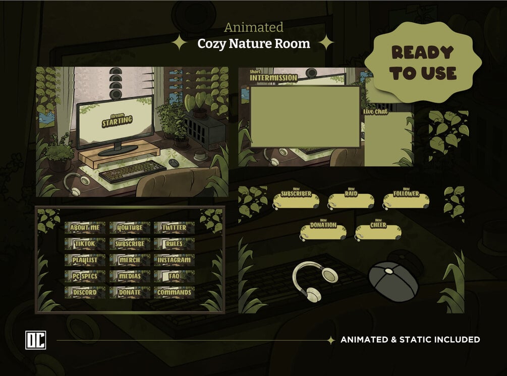 Elevate your stream with our Cozy Nature Room animated stream pack! Our bundle includes stunning animated graphics that will add a touch of magic to your stream. our overlays are designed to captivate your audience. Discover our animated stream overlay now!